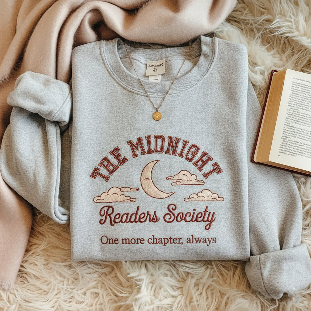 Late Night Readers Club Embroidered Sweatshirt, Book Lover Gift, Cozy Reading Crewneck, Bookworm Hoodie, Booktok Merch, Book Club Shirt